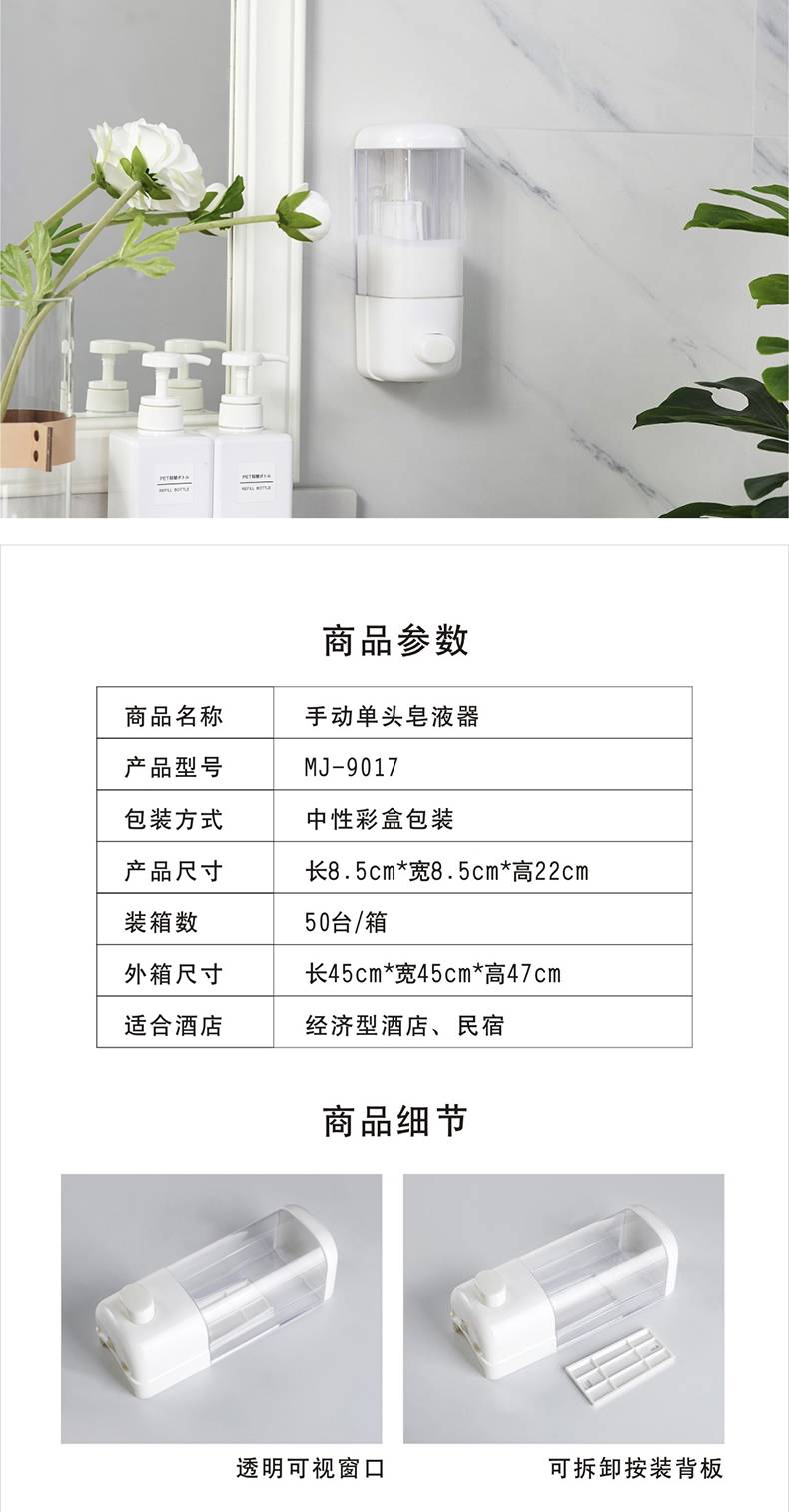 • 500ml手動單頭皂液器(白色)
