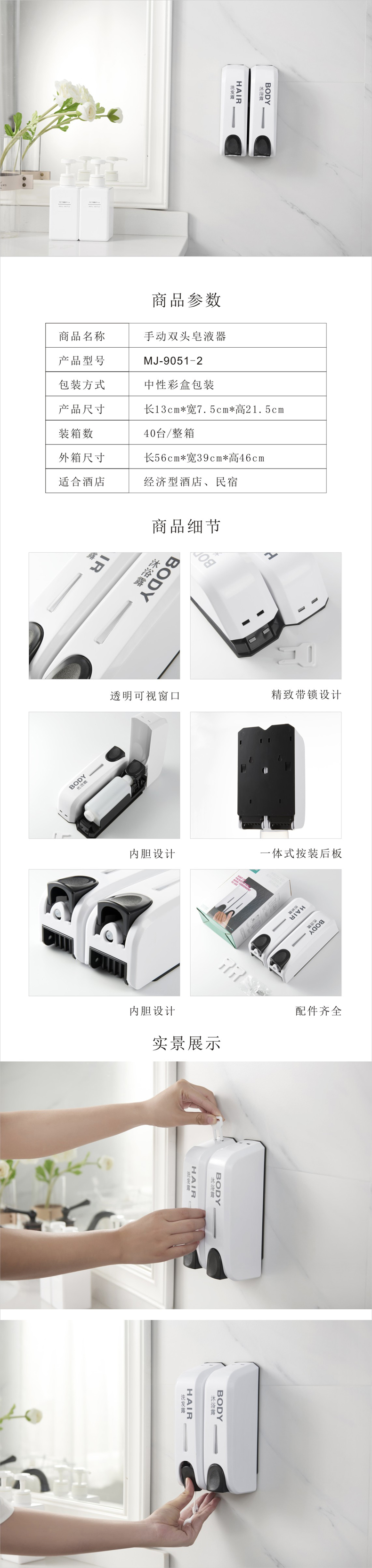• 手動雙頭皂液器